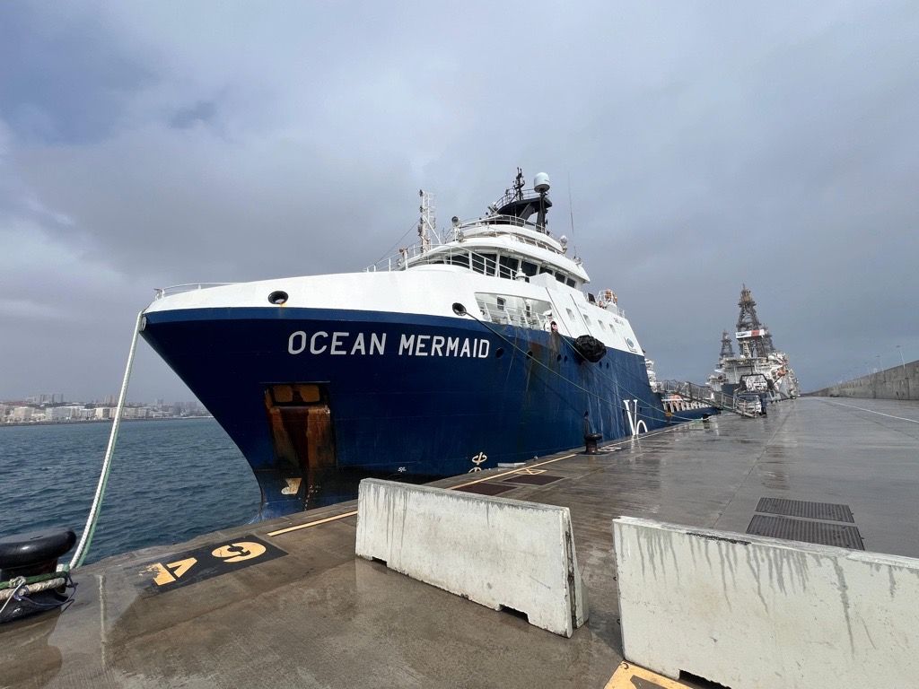The Ocean Mermaid chartered by TGS, has arrived at the Port of Las Palmas for dockside repairs, provisioning, and refueling.