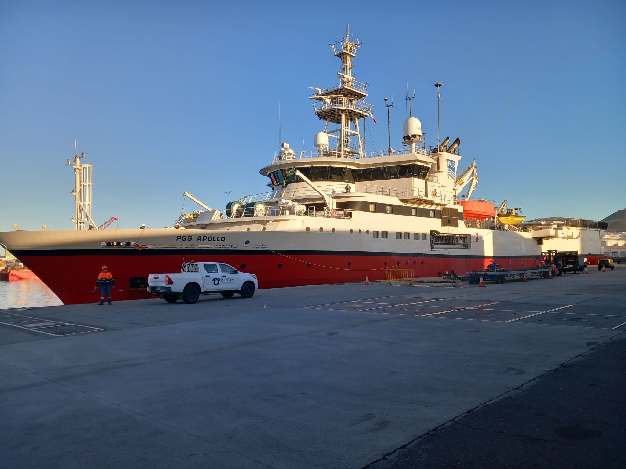 The PGS Apollo made a 24-hour stopover. This operation at the Port of Las Palmas was crucial for optimizing the vessel. We managed waste discharge, crew change, provisioning, and refueling.